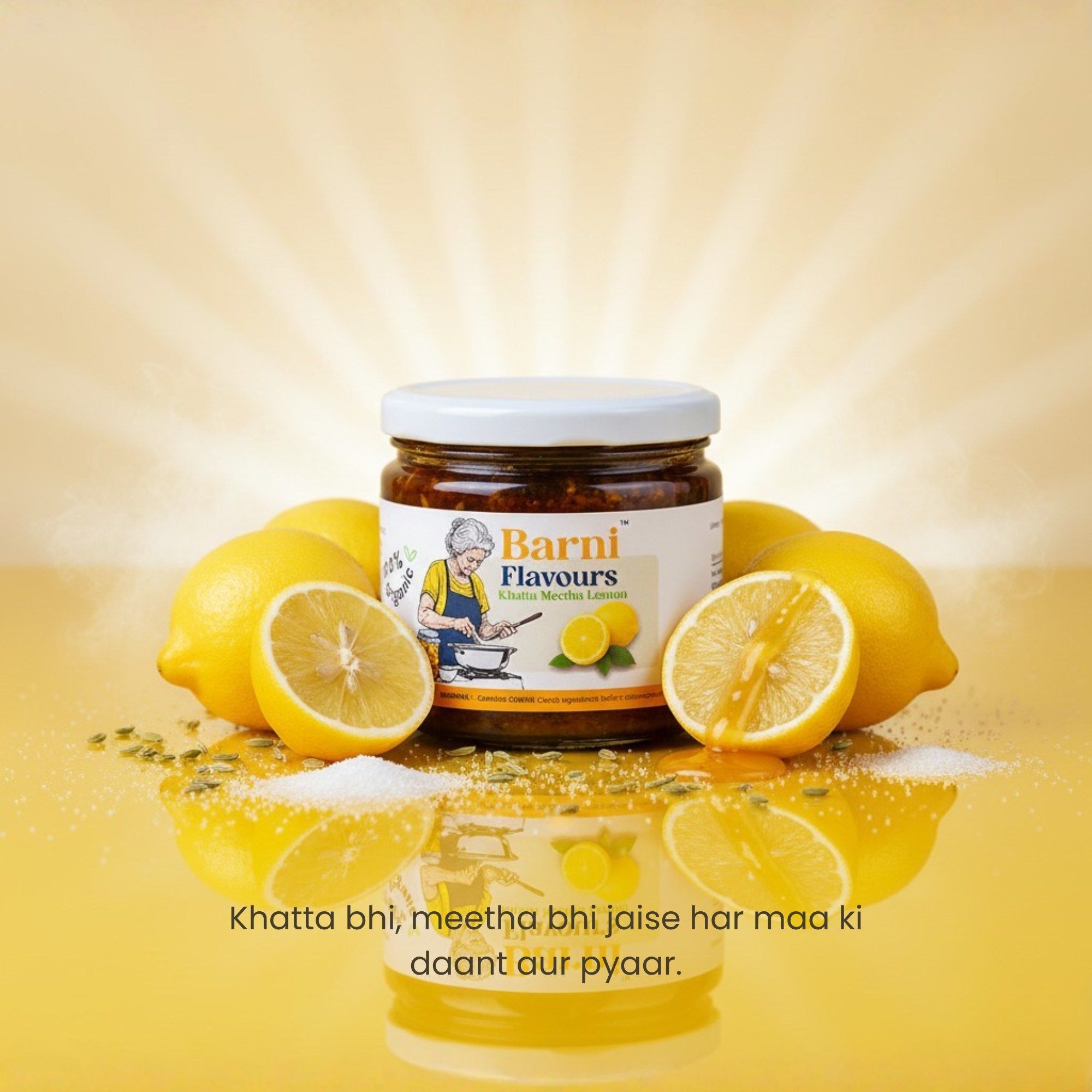 Barni Flavours Authentic Homemade Lemon Pickle 100g | Traditional Indian Nimbu Ka Achar | Sweet, Spicy & Zesty | Made with Fresh Lemons & Natural Spices | No Preservatives | Leak-Proof Glass Jar”