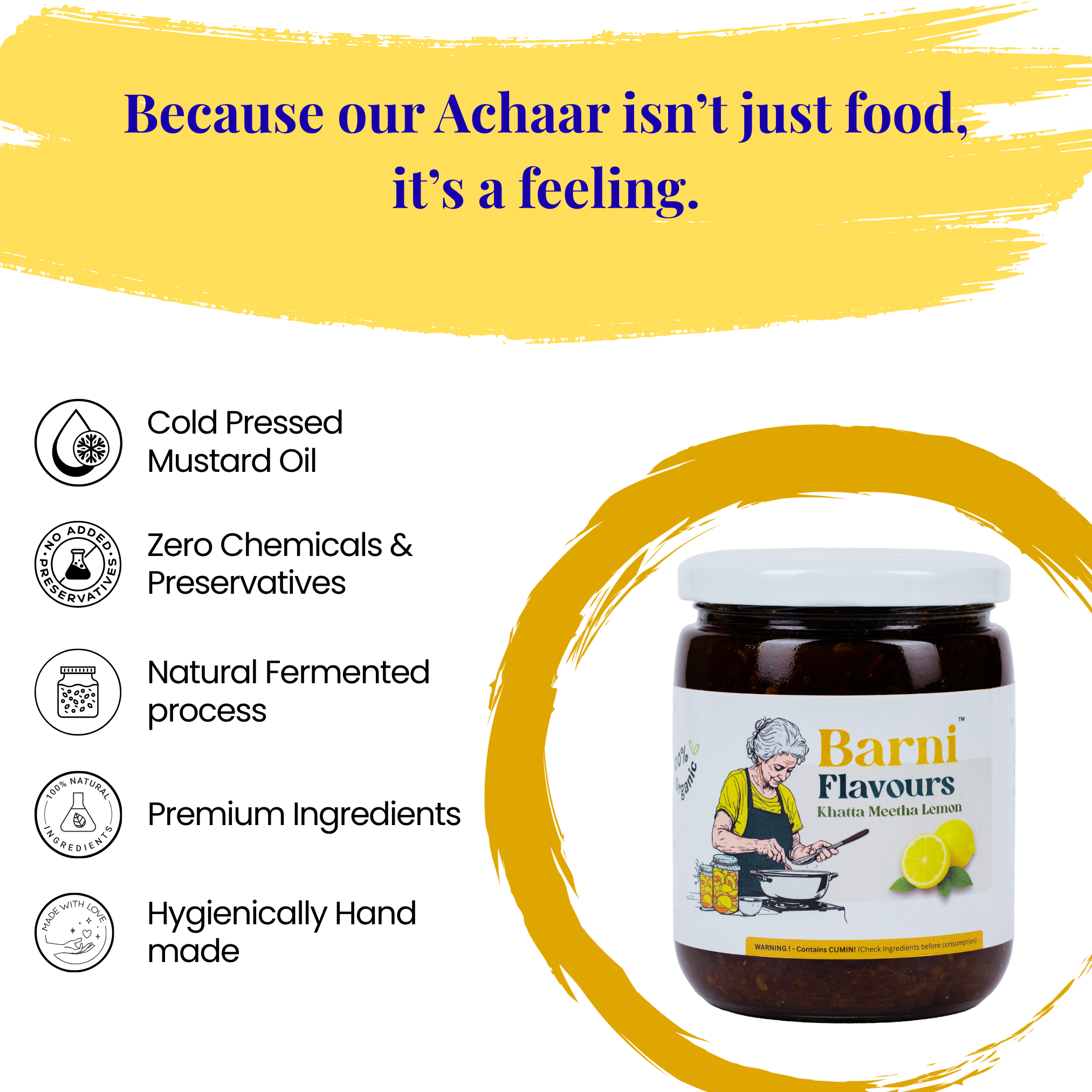 Crafted using fresh lemons, mustard oil, and natural Indian spices without artificial colors, flavors, or preservatives. Clean-label, traditional goodness.